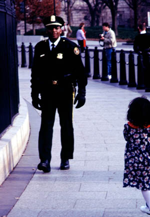 At the White House, Rev ran ahead up the sidewalk. He says he saw President Clinton come out of the White House with some visitors. I missed it myself.