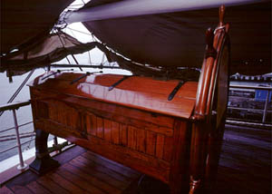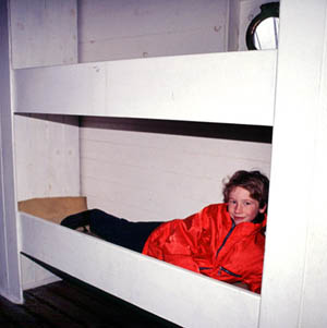 The sailors' bunks were tiny. I had Rev lie down in one.